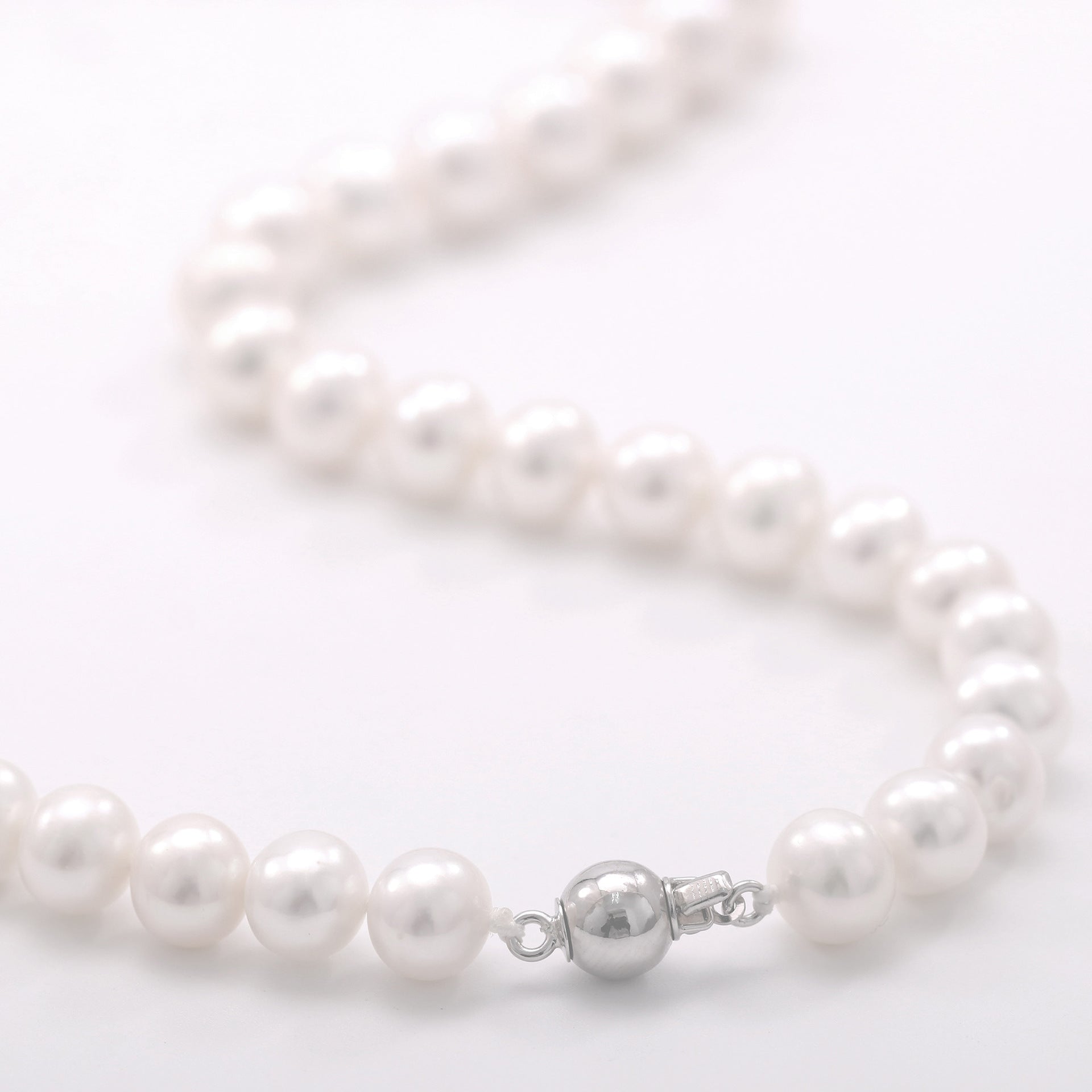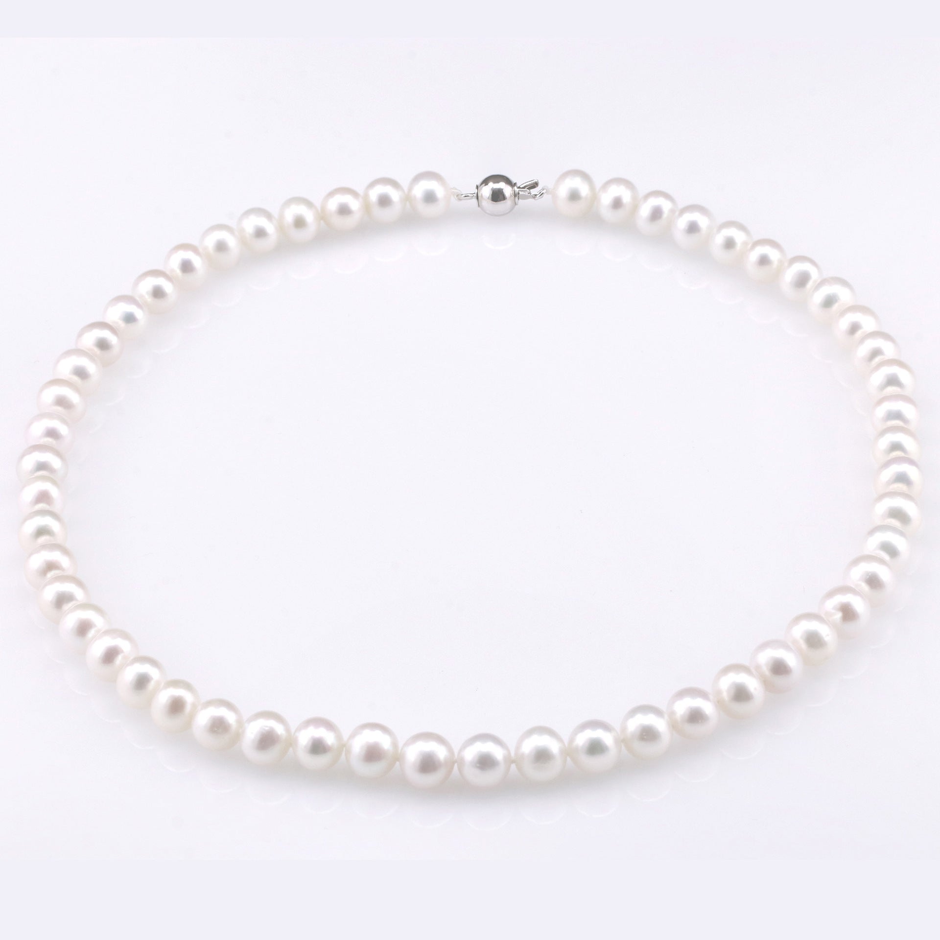 Carefully selected natural fresh water pearls whether you dress businesslike or modern, a pearl necklace is an easy and stylish accompaniment. The elegance and simplicity of the design make it a casual accessory that can be worn often, while also standing out in a variety of ceremonial settings.