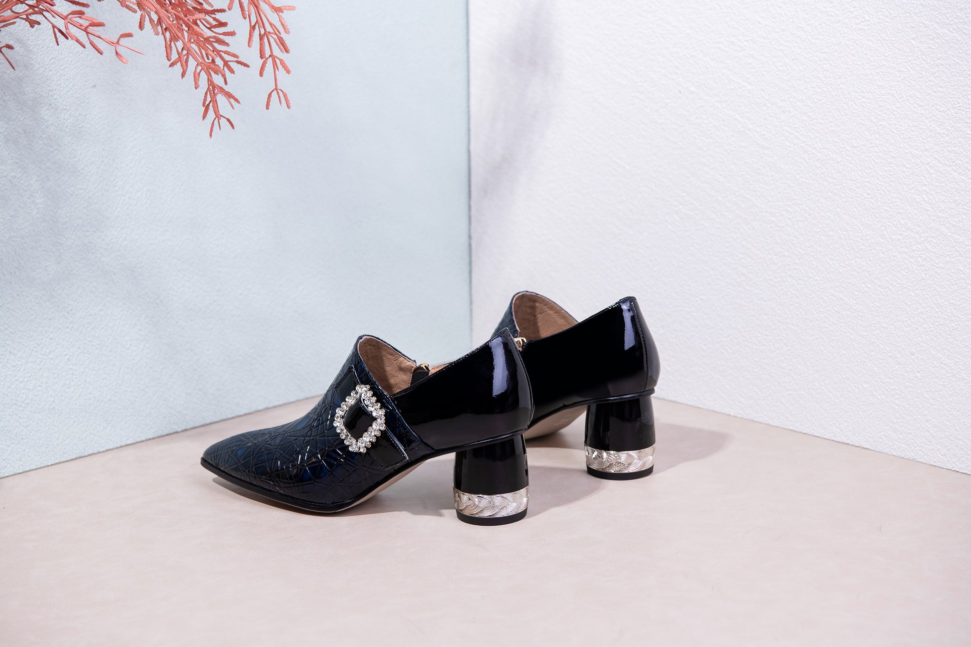 Classic black pumps shoes deisgned with pointed toe, patent leather, buckle, zipper and cone heels can go with almost all your outfits.