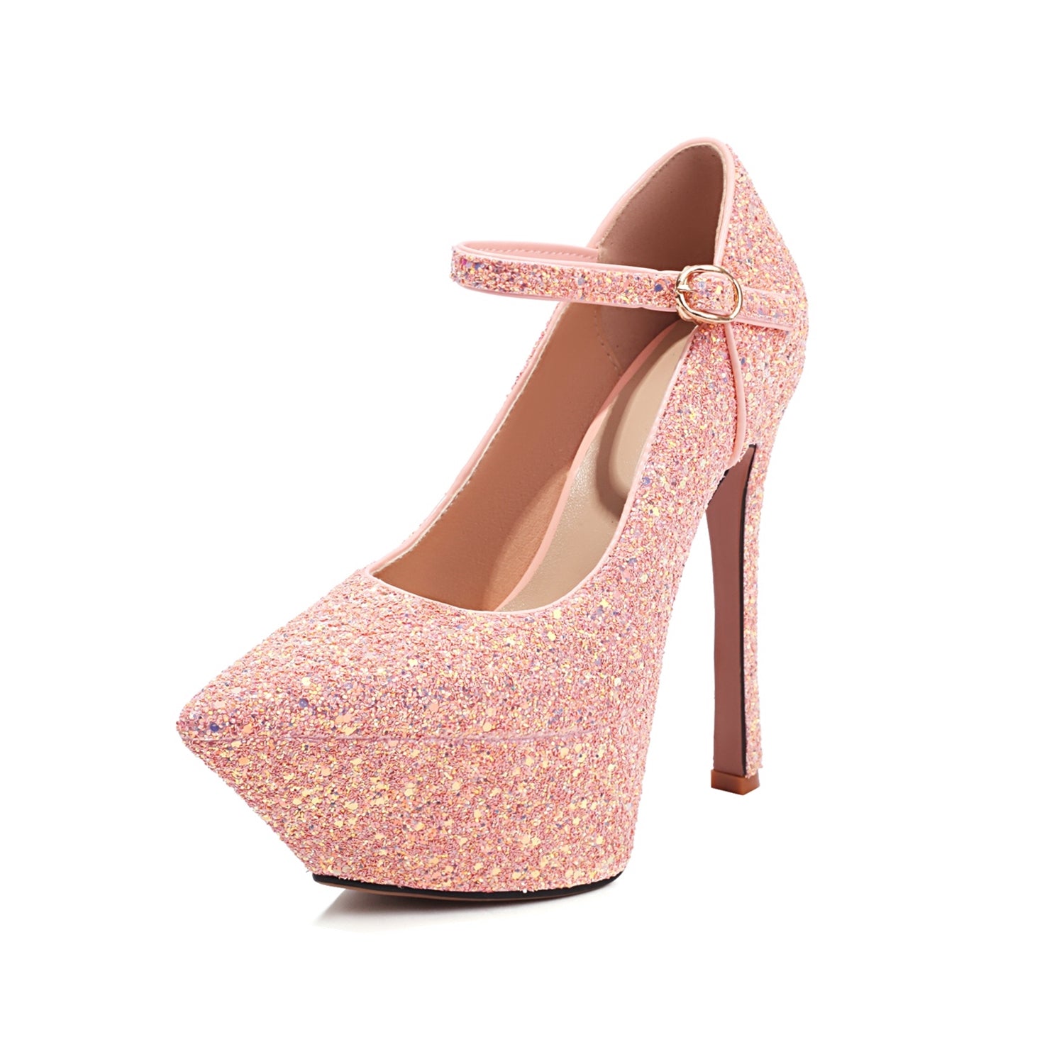Nine Seven Sequins Pointed Toe Women's Handmade High Stiletto Heel Platform Modern Buckle Weeding Pumps Shoes