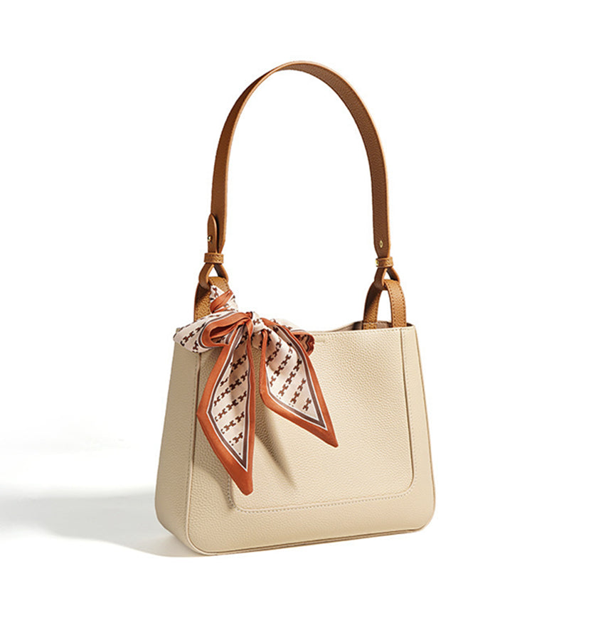 Nine Seven Shoulder Bag Genuine Leather Women's Handmade Silk Scarf Decor Inner Subbag Tote Handbag