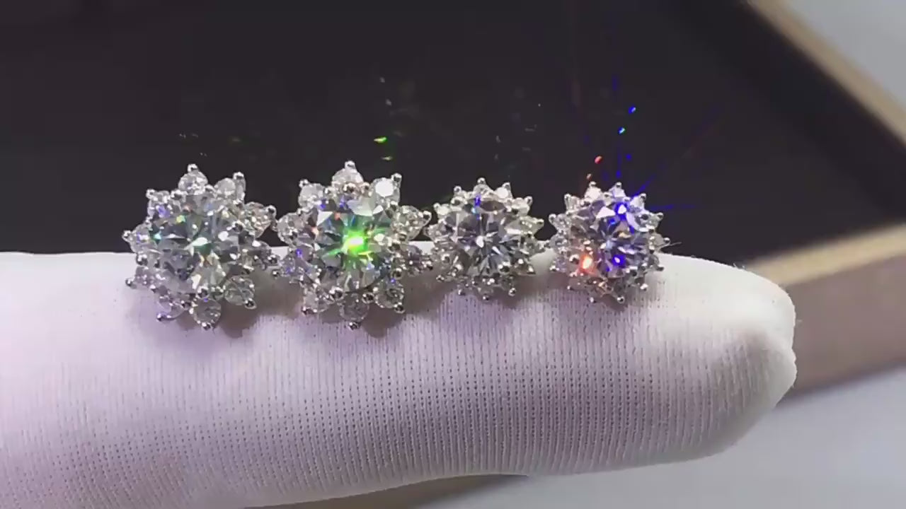 Sparkly Glitter Moissanite Earrings 925 Sterling Silver Sunflower Earring for Women
