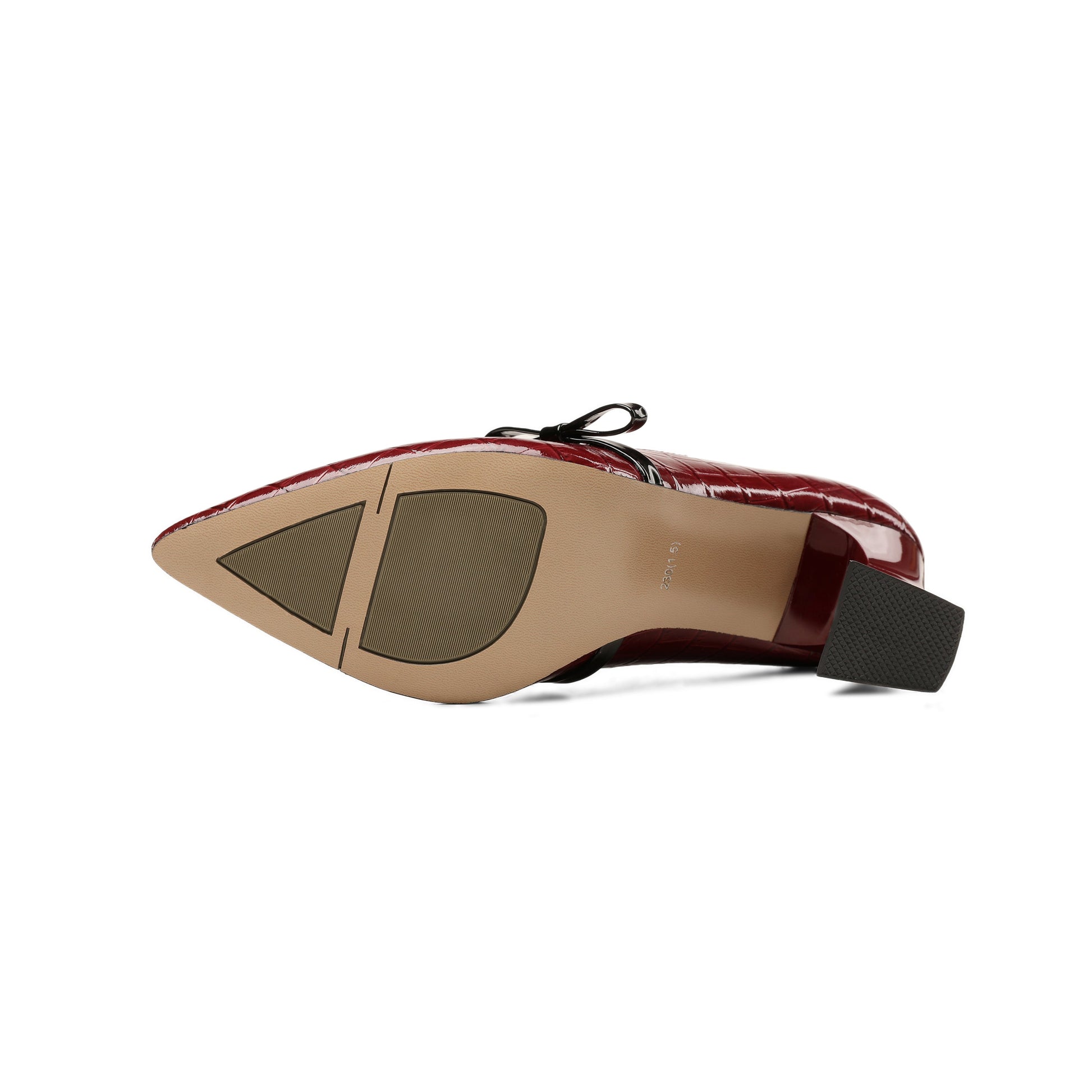 Nine Seven Embossed Patent Leather Handmade Women's Mid Spool Heel Pointed Toe Slip On Modern Pump Shoes with Bowtie