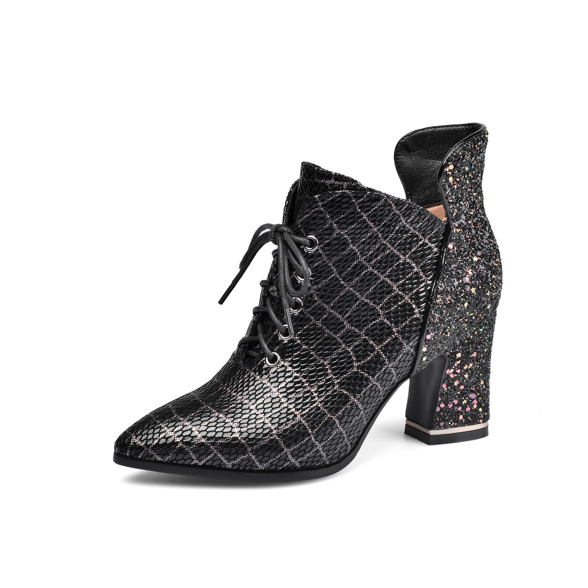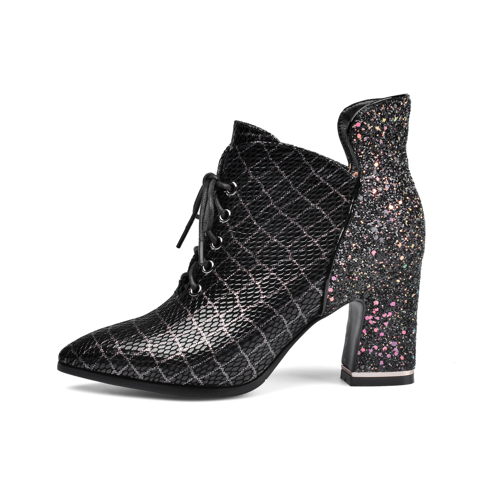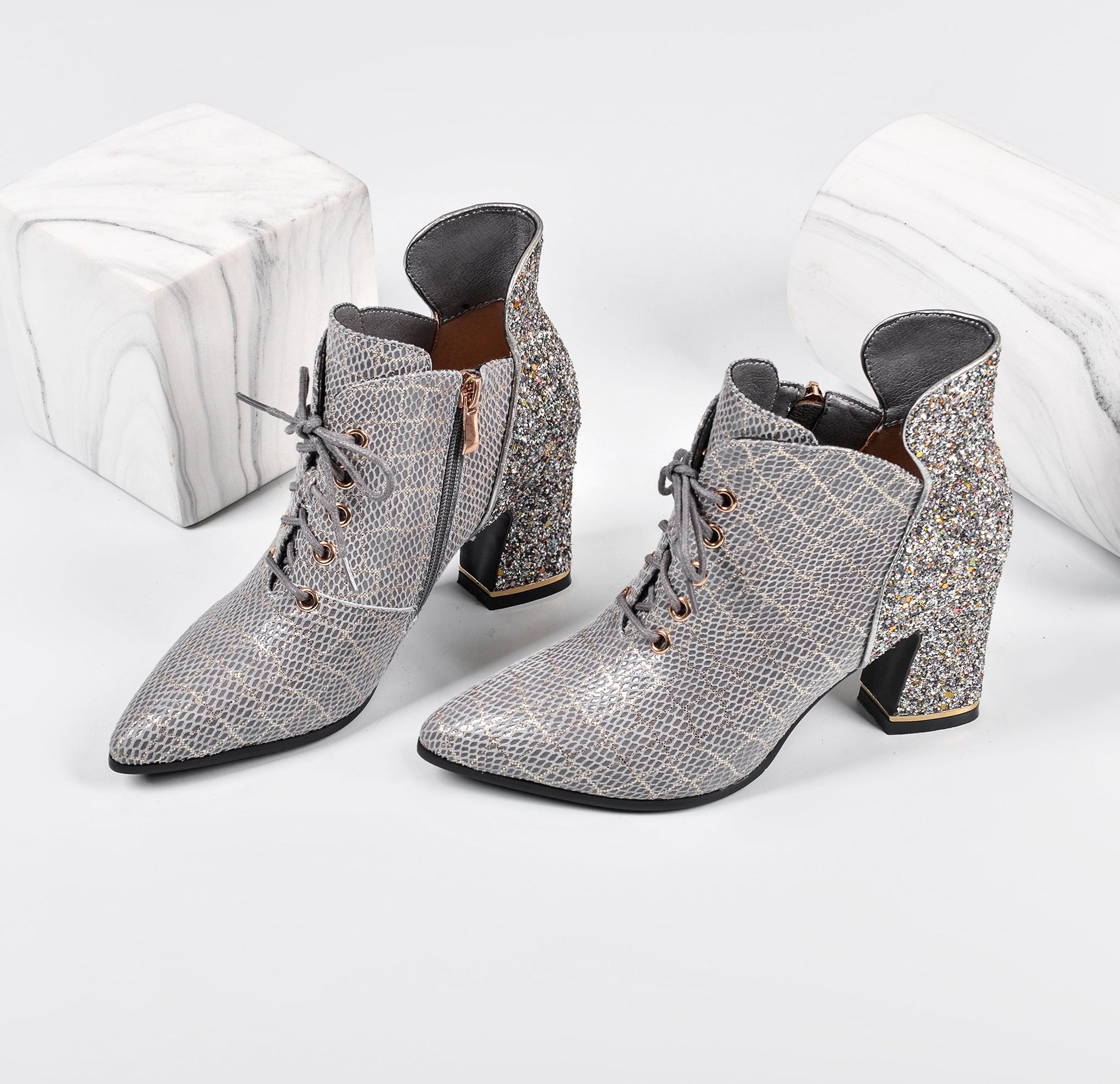 Stylish ankle boots designed with pointed toe and chunky heels can go with almost all your outfits.