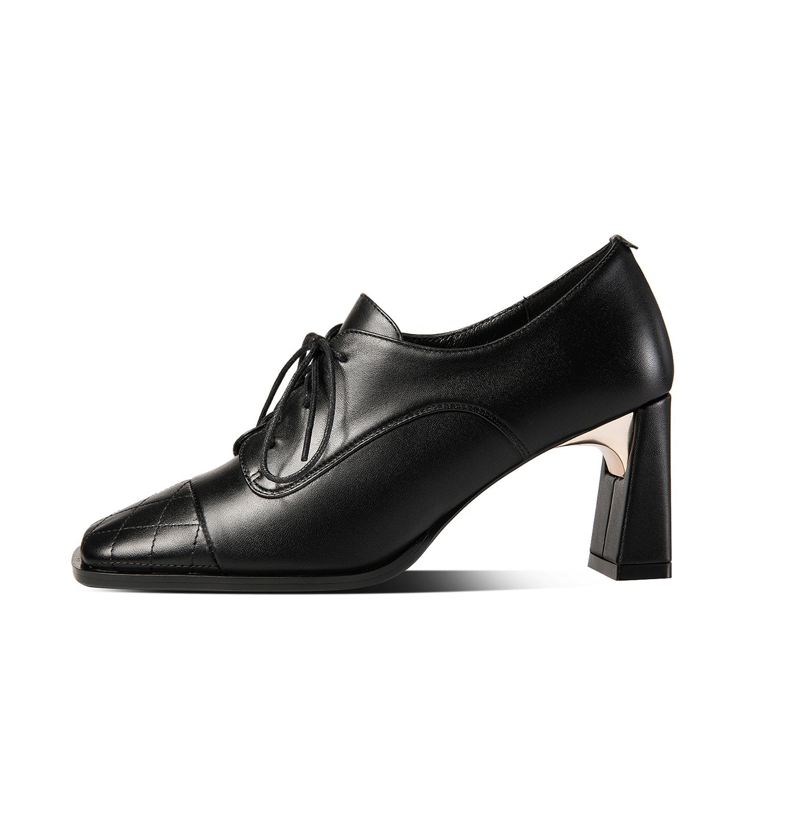 Stylish pump shoes feature in genuine leather, square toe,selftie and mid heel.Soft insole could make you feel comfortable.