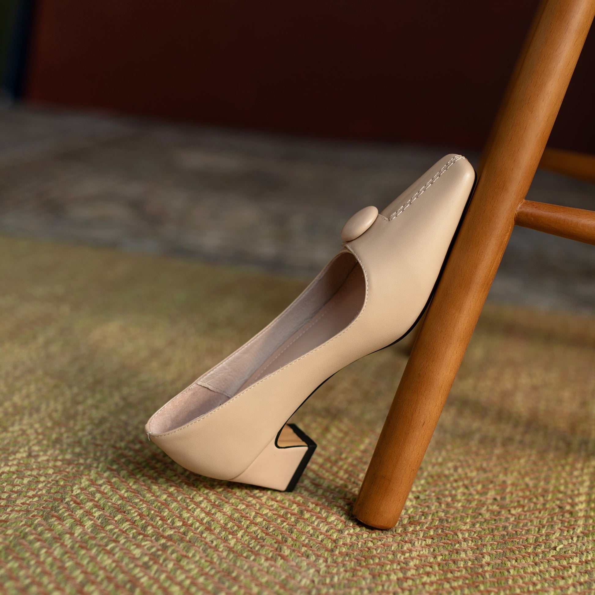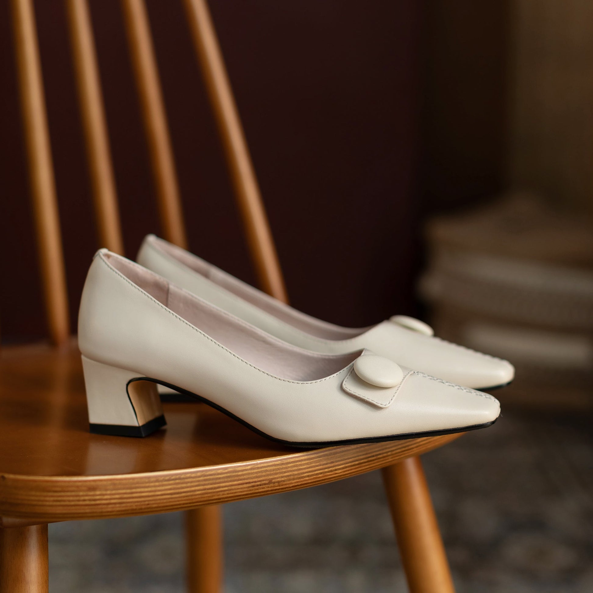 Nine Seven Genuine Leather Women's Handmade Square Toe Low Heel Button Graceful Pump Shoes
