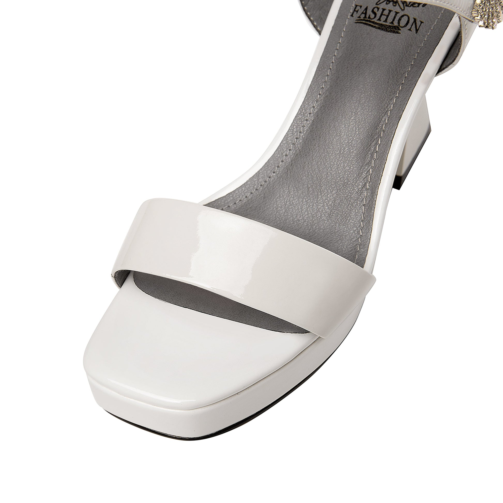 Nine Seven Glossy Patent Leather Platform Women's Handmade High Heel Crystal Open Toe Slingback Sandals with Glitter Rhinestone
