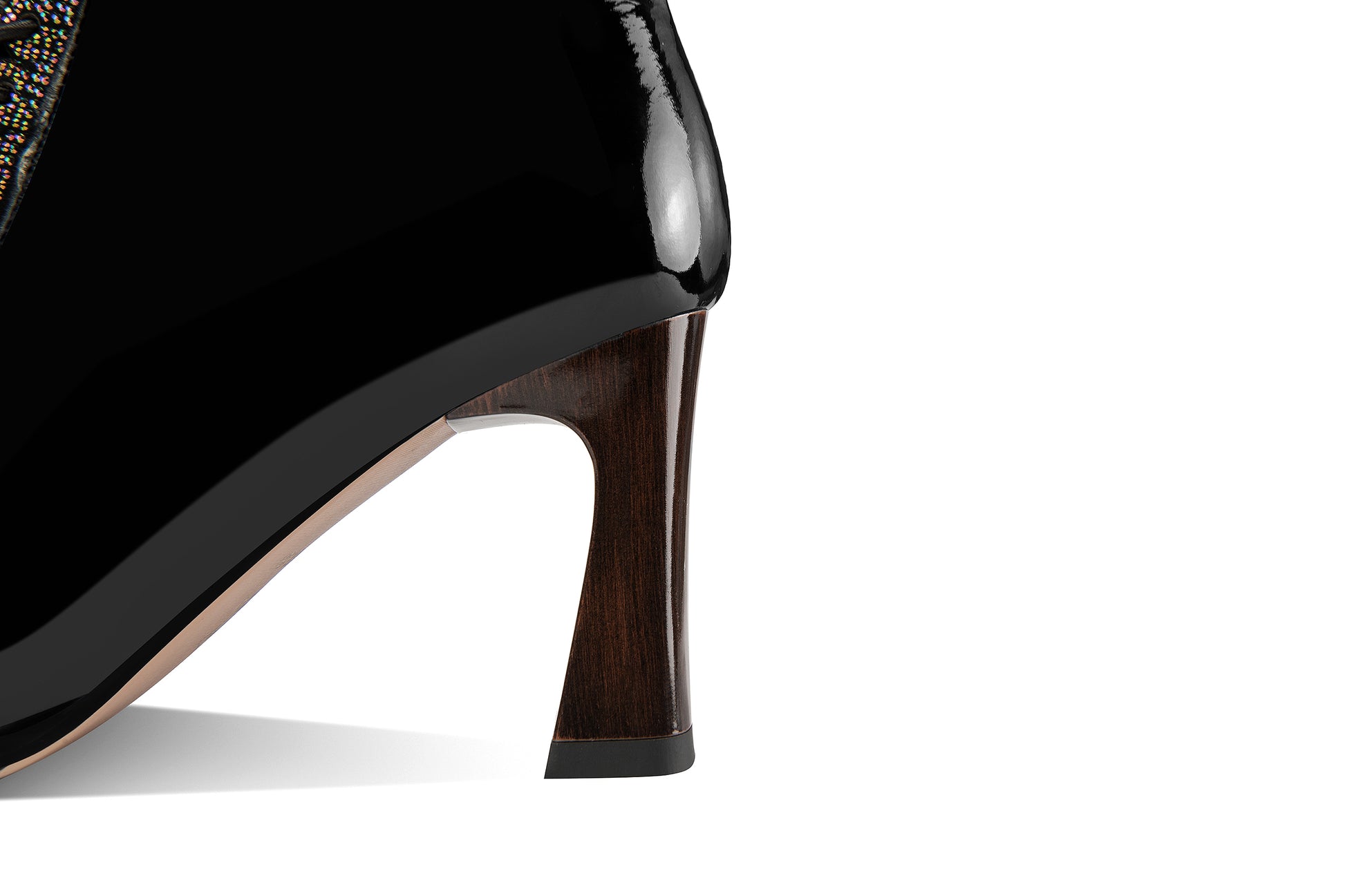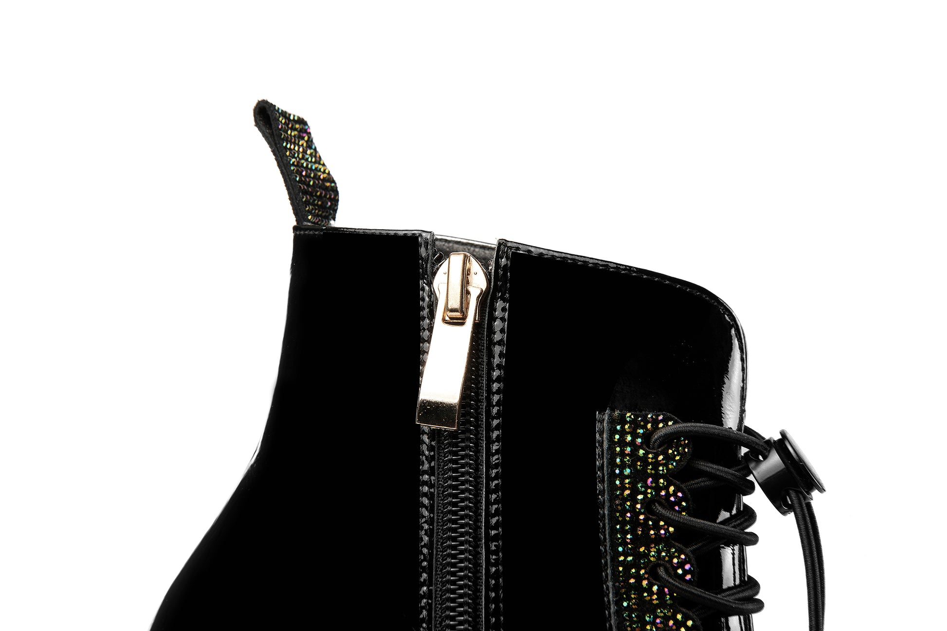Nine Seven Handmade Women's Patent Leather Rhinestones Front Lace Up Pointed Toe Mid Chunky Heel Ankle Boots