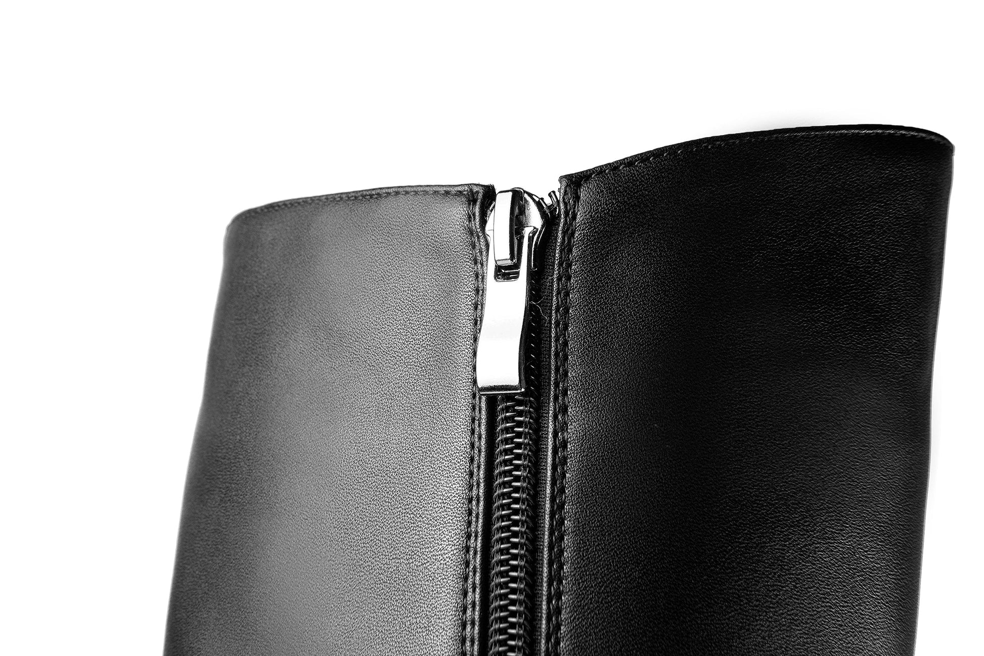 Nine Seven Women's Genuine Leather Handmade Side Zip Up Pointed Toe Mid Chunky Heel Modern Knee High Boots with Buttons Decor