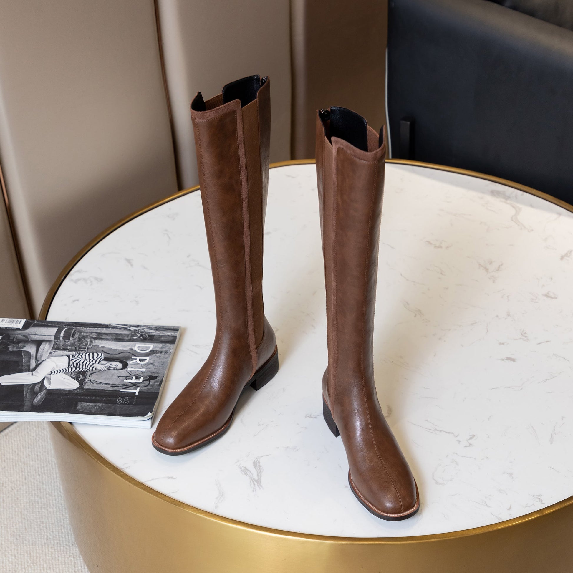 Stylish knee high boots are designed with genuine leather, round toe, back zip and comfortable heels.style are quite versatile.