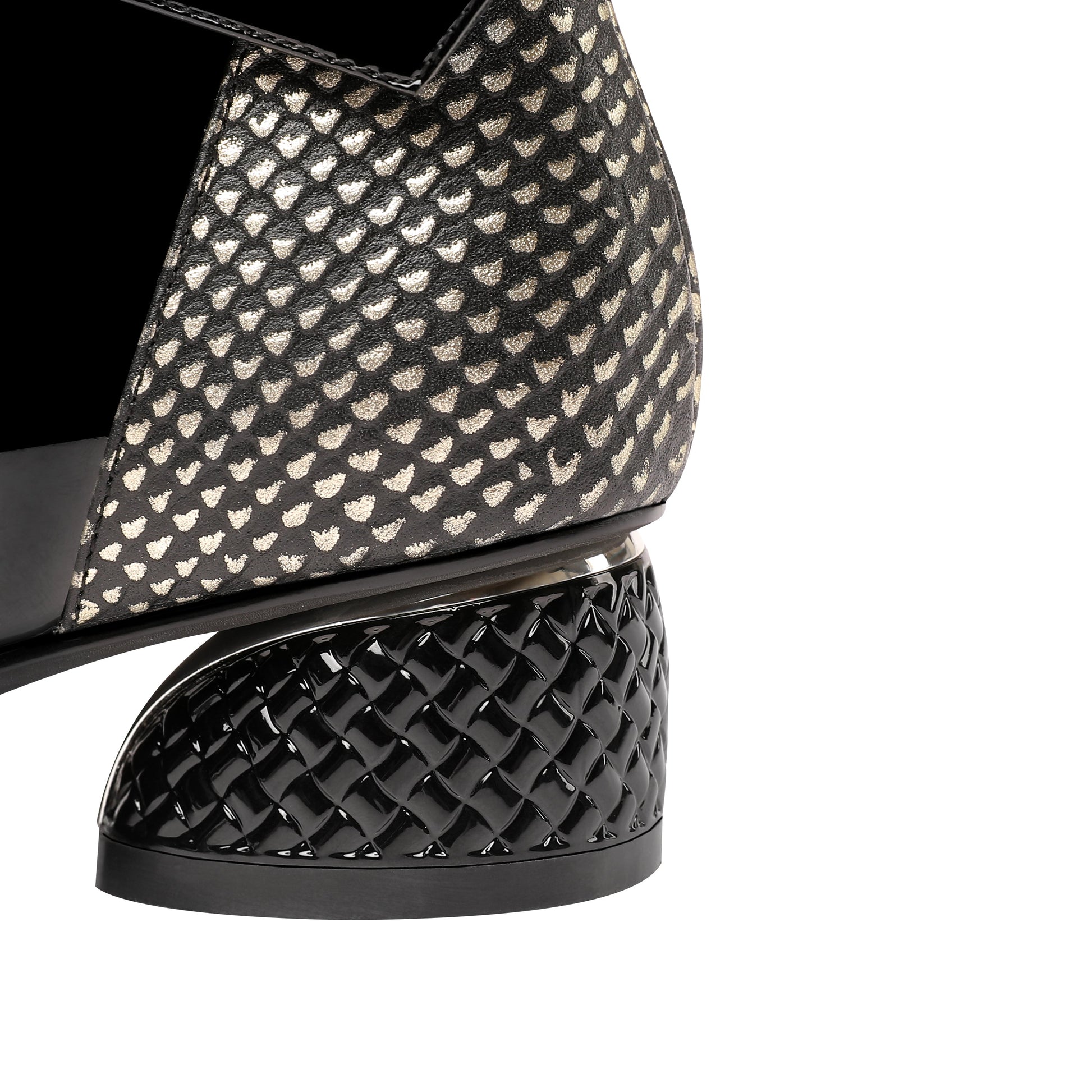 Nine Seven Women's Handmade Patent Leather Chunky Heel Side Zip Up Pointed Toe Belt Design Ankle Dress Booties