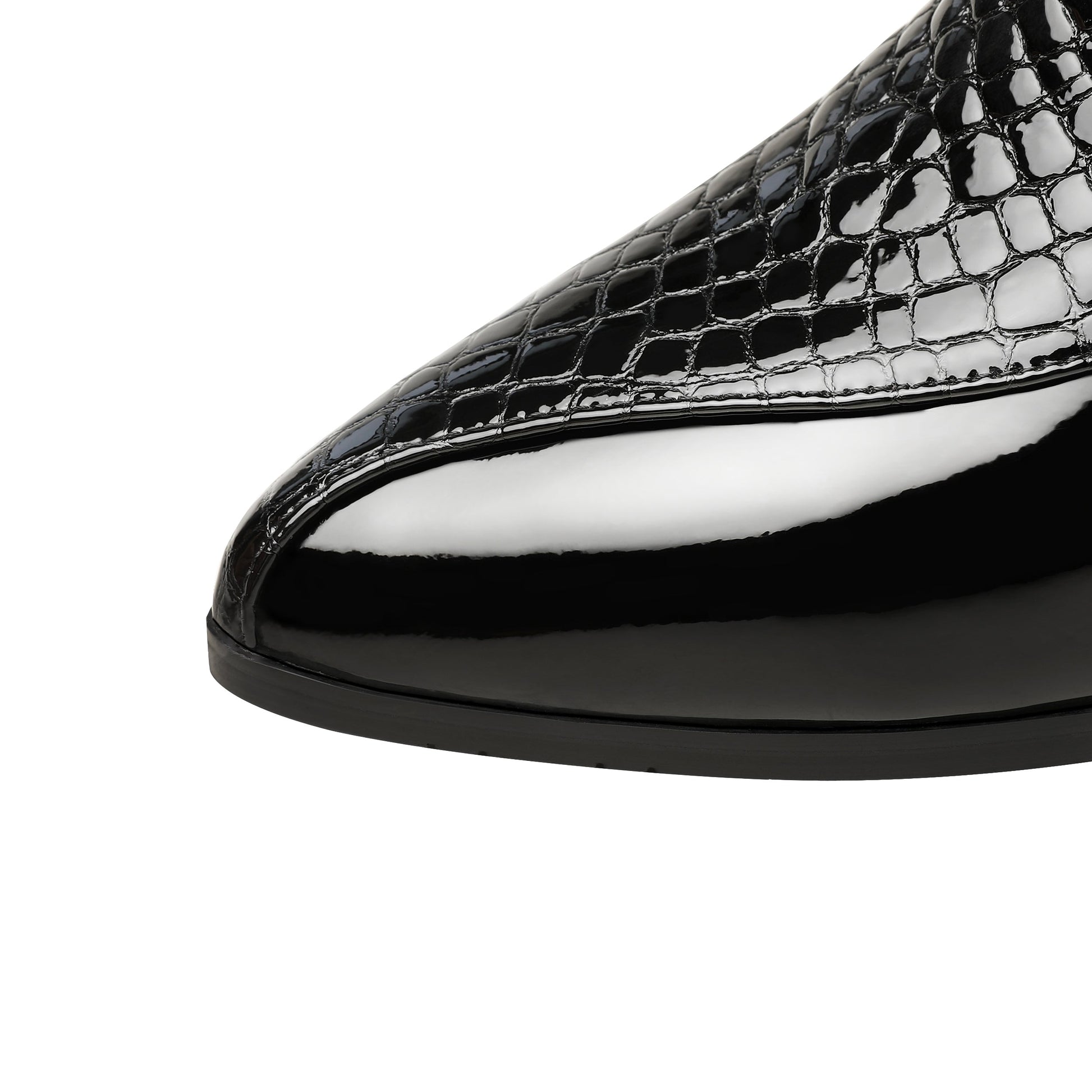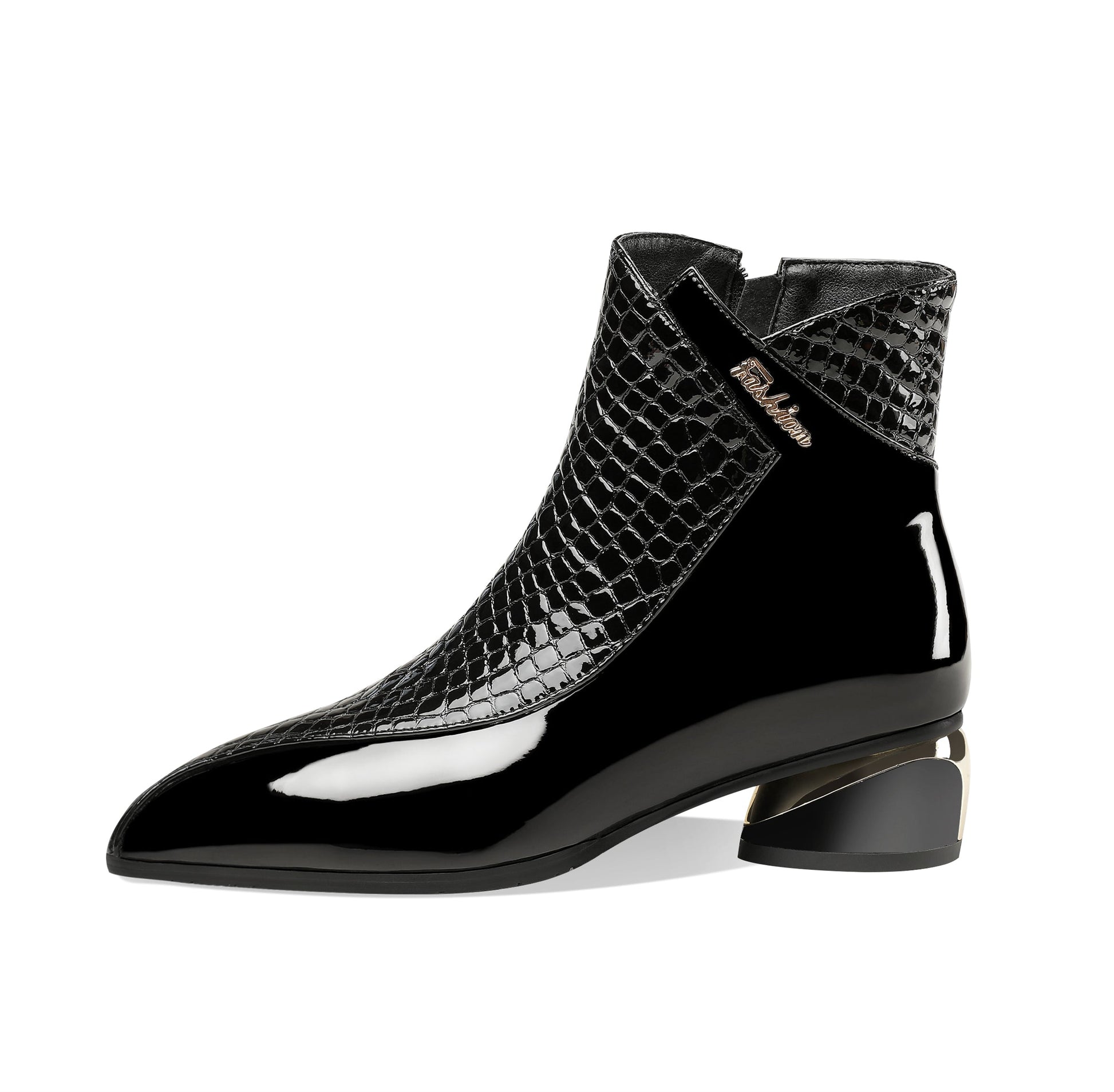Casual ankle boots featured with patent leather, pointed toe, side zipper and low chunky heels can go with alost all your outfits.