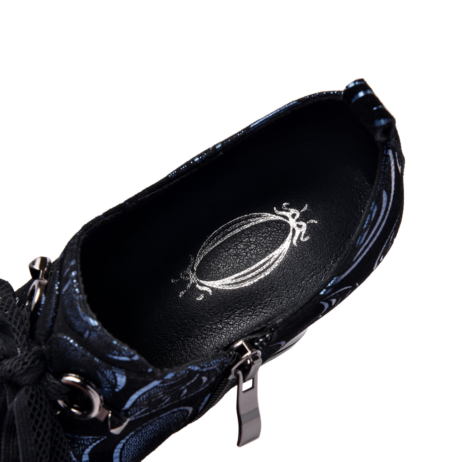 Nine Seven Women's Handmade Printed Suede Leather Platform Round Toe Lace Up Side Zip High Chunky Heel Pumps