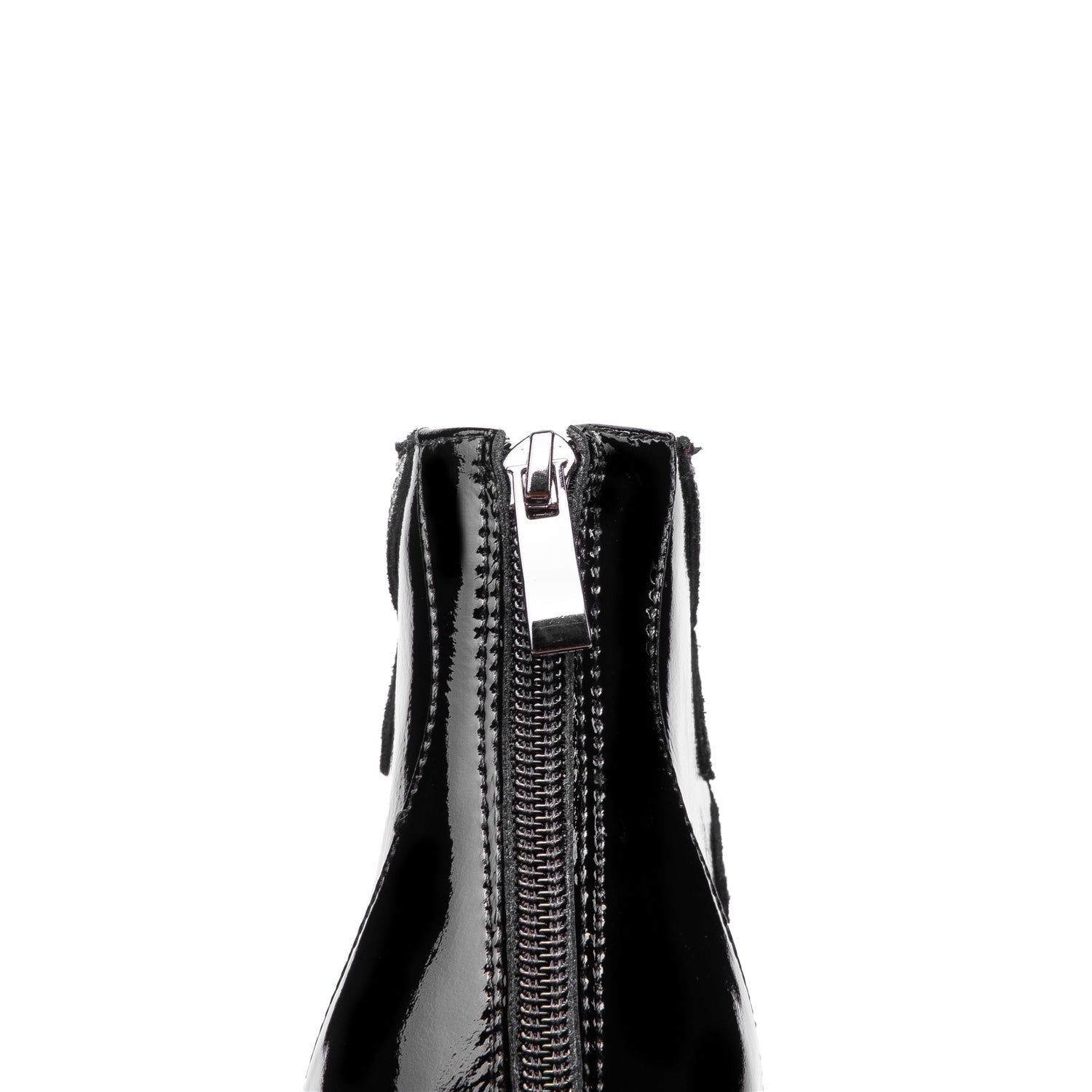Nine Seven Women's Patent Leather Handmade Mid Chunky Heel Back Zipper Pointed Toe Plus-Size Ankle Boots With Glitter Rhinestones