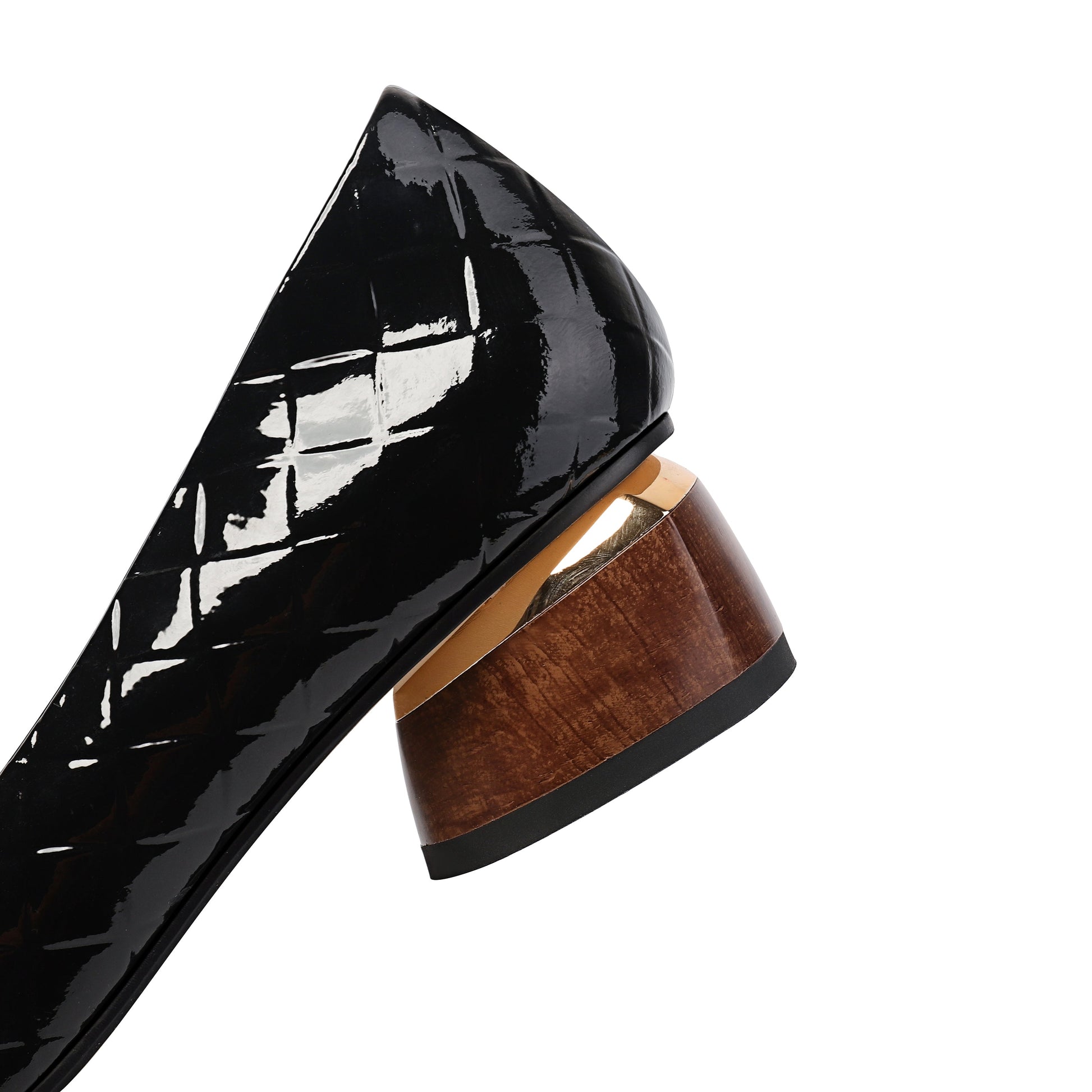 Nine Seven Women's Patent Leather Pointed Toe Handmade Low Chunky Heel Fashion Loafer Shoes with Buckle