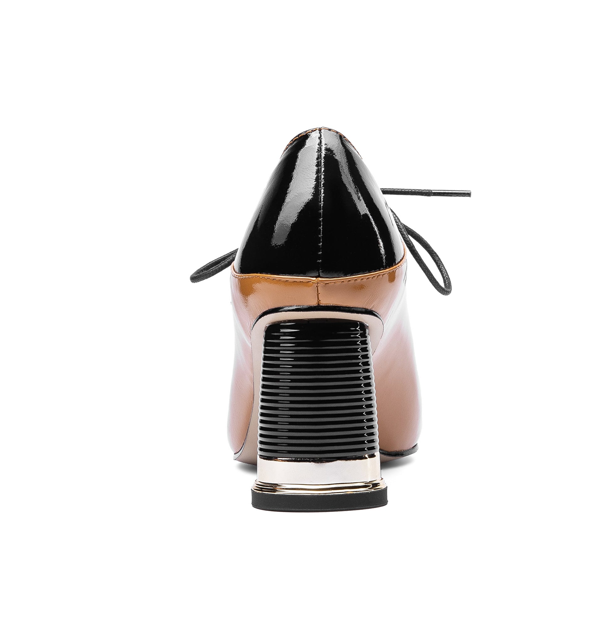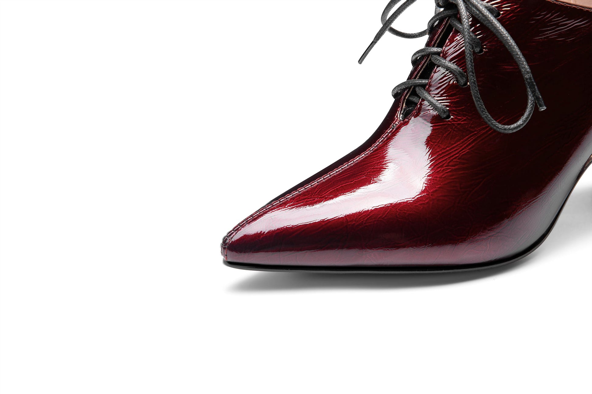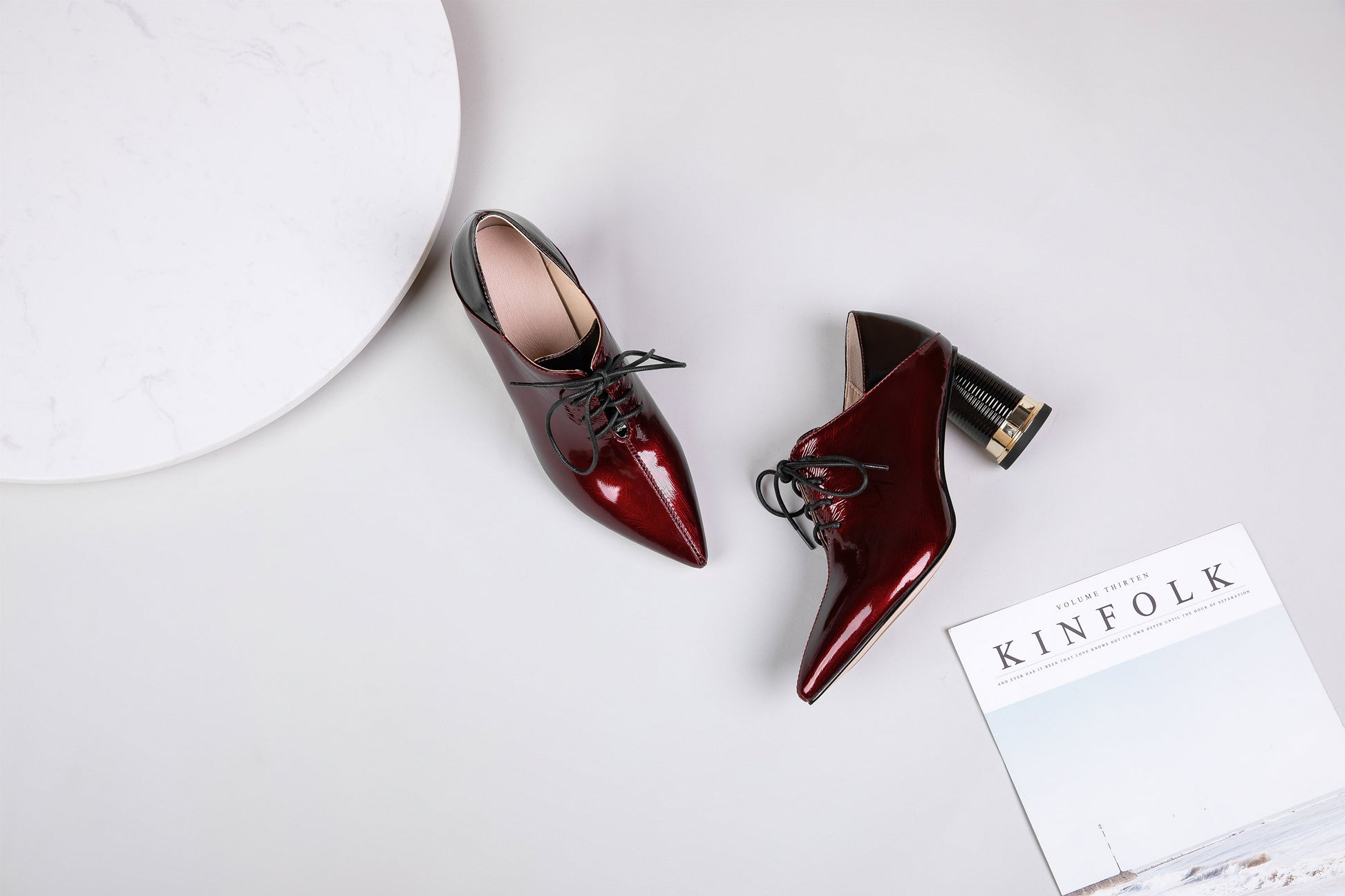 Nine Seven Women's Patent Leather Pointed Toe Handmade Selftie Mid Chunky Heel Casual Pumps Shoes