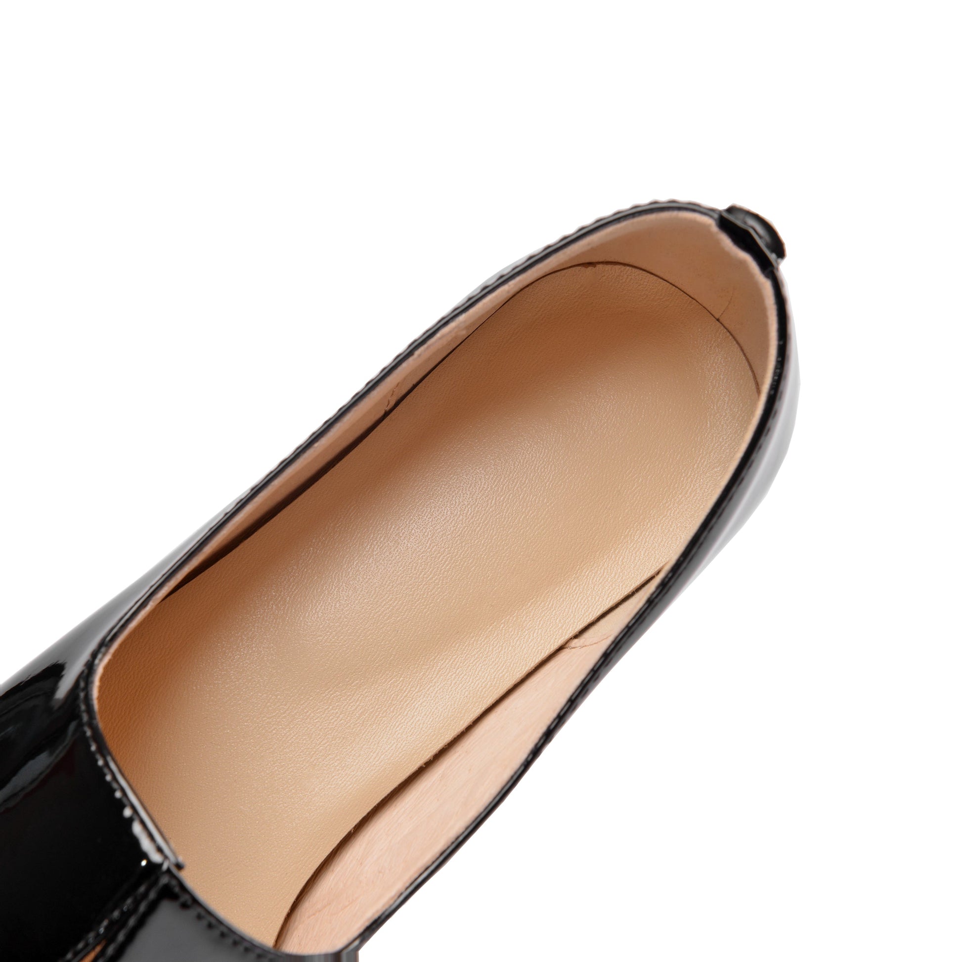 Nine Seven Women's Patent Leather Pointed Toe Handmade Stitches Low Chunky Heels Stylish Loafer Shoes