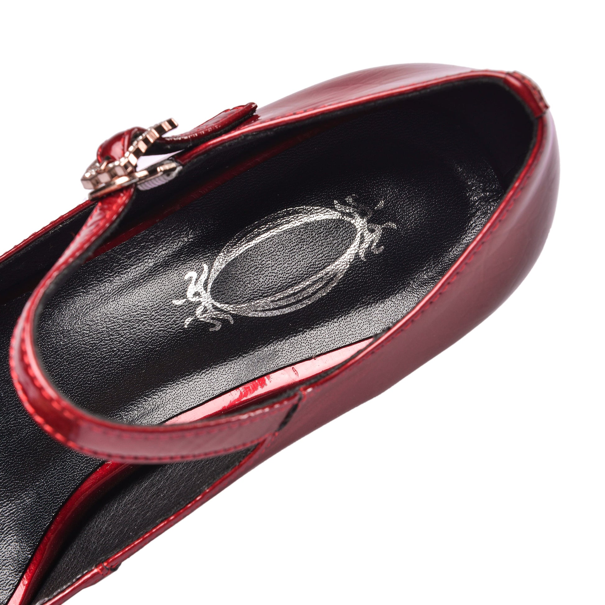 Nine Seven Women's Patent Leather Rouns Toe Handmade Buckle Belt High Chunky Heel Trendy Pumps Shoes