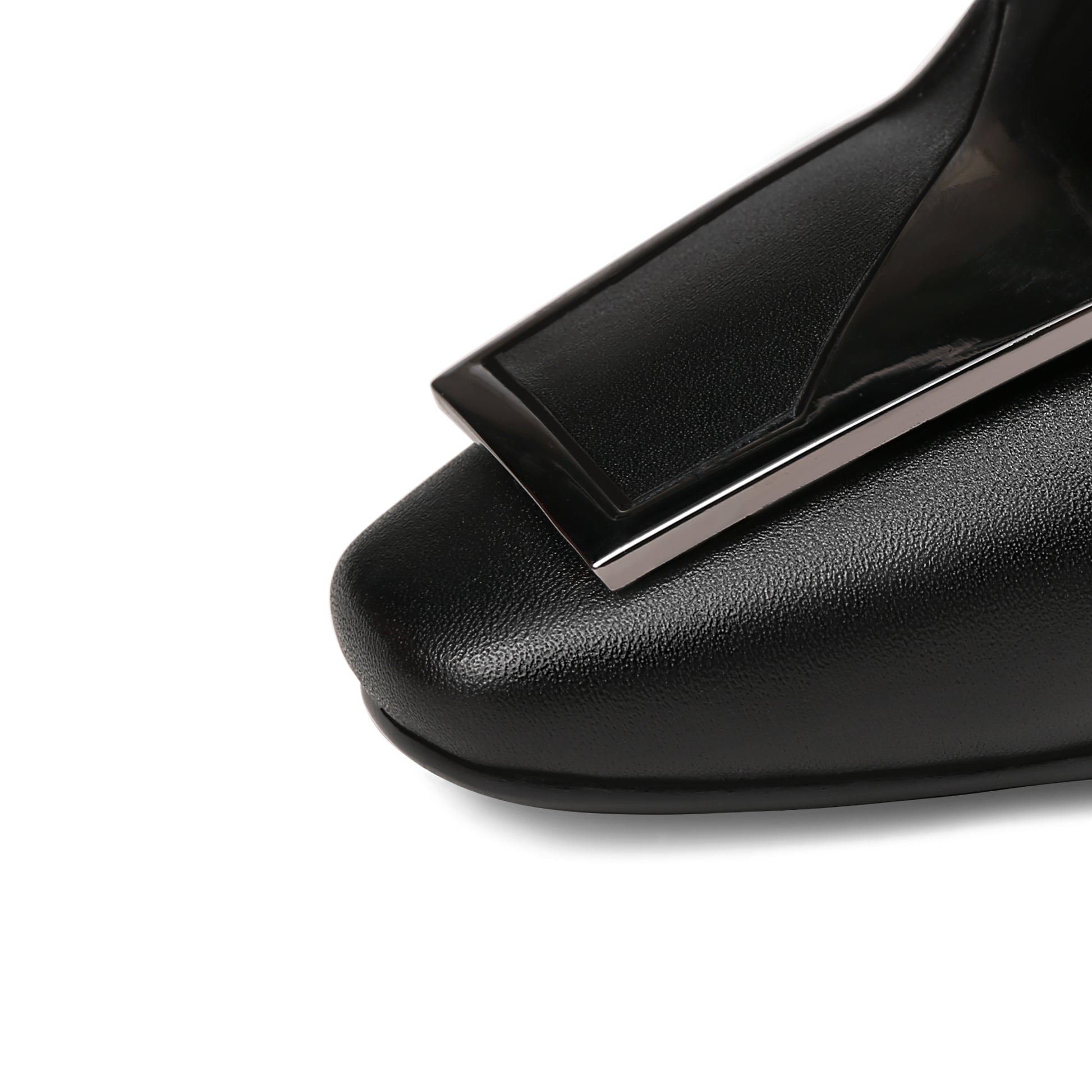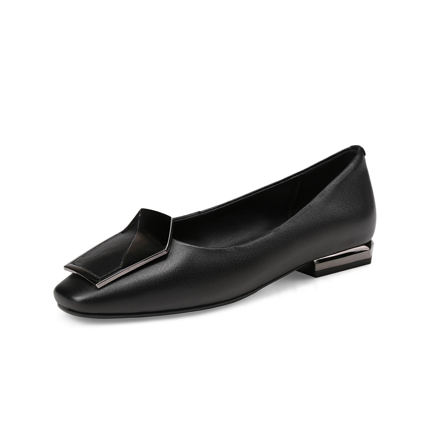 Nine Seven Women's Genuine Leather Square Toe Handmade Buckle Décor Casual Flat Shoes