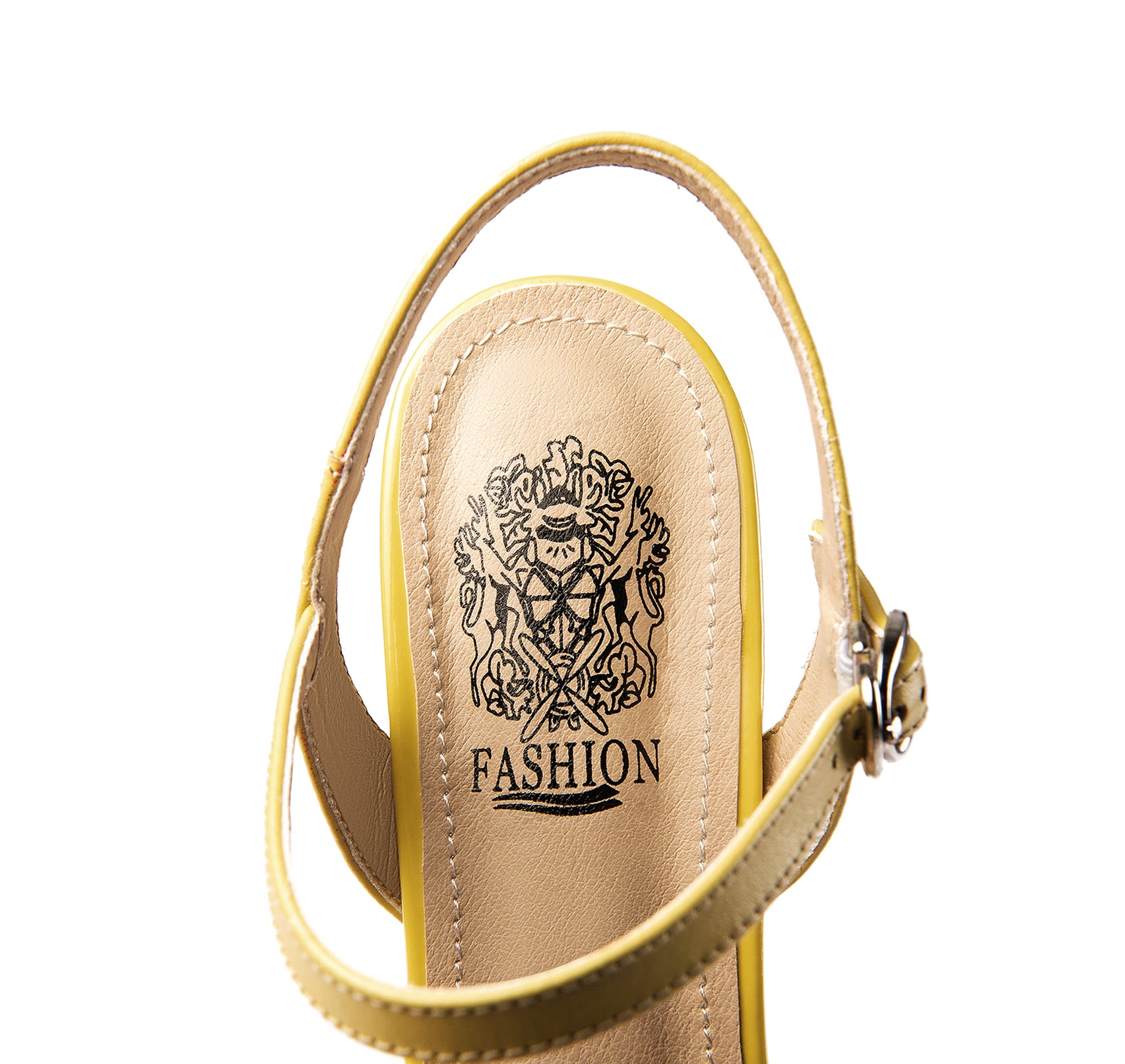 Stylish sandal heels are designed with genuine leather, square toe, transparent heel, modern buckles.