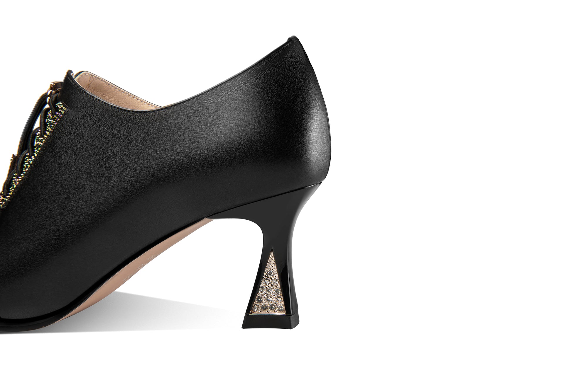 Stylish pumps shoes designed with genuine leather, pointed toe, lace up, side zipper and mid heels can go with almost all your outfits.