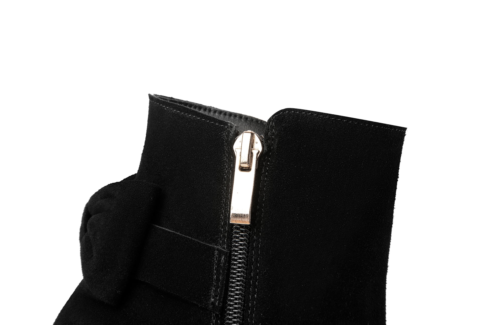 Suede leather ankle boots designed with pointed toe, side zipper and inner heels can go with almost all your outfits.